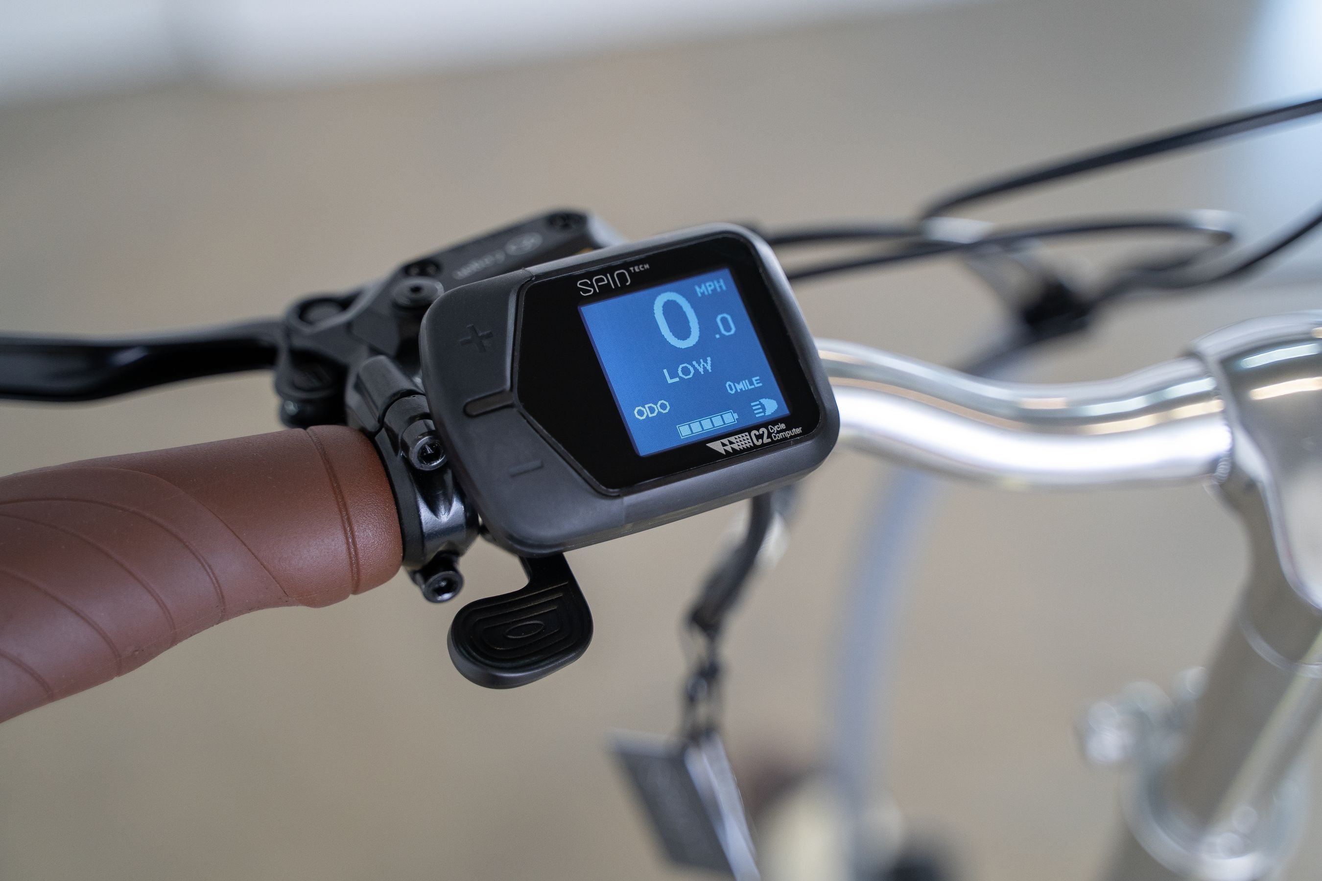 To power the cycle we now incorporate a 250W continuous spin motor by SpinTech™ and SpinTech™ Panasonic lithium battery capable of distances in excess of forty miles (depending on riding environment and levels of pedal assist). V-Wave ensures a smooth and enjoyable riding experience by managing the torque-to-speed ratio. With four different pedal assist levels riders can effortlessly accelerate to the motor's top speed of 15.5mph. The pedal assistance level can be easily set using the intuitive and ergonomically designed LCD computer located on the handle bar.